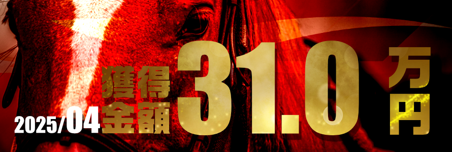 | 30,000円獲得 | 鹿ケ谷特別 | 複勝4番 | 300円 |